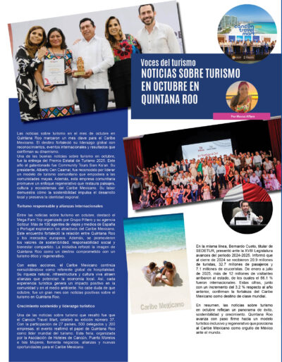 Con estas acciones, el Caribe Mexicano continúa consolidándose como referente global de hospitalidad. Su riqueza natural, infraestructura y cultura viva atraen alianzas que potencian la economía local. Así, cada experiencia turística genera un impacto positivo en la comunidad y en el medio ambiente. No cabe duda que octubre, fue un gran mes con noticias positivas sobre turismo en Quintana Roo.